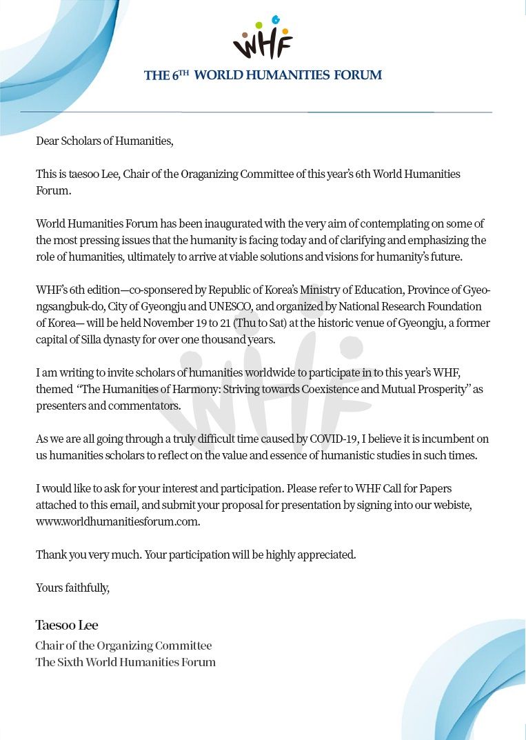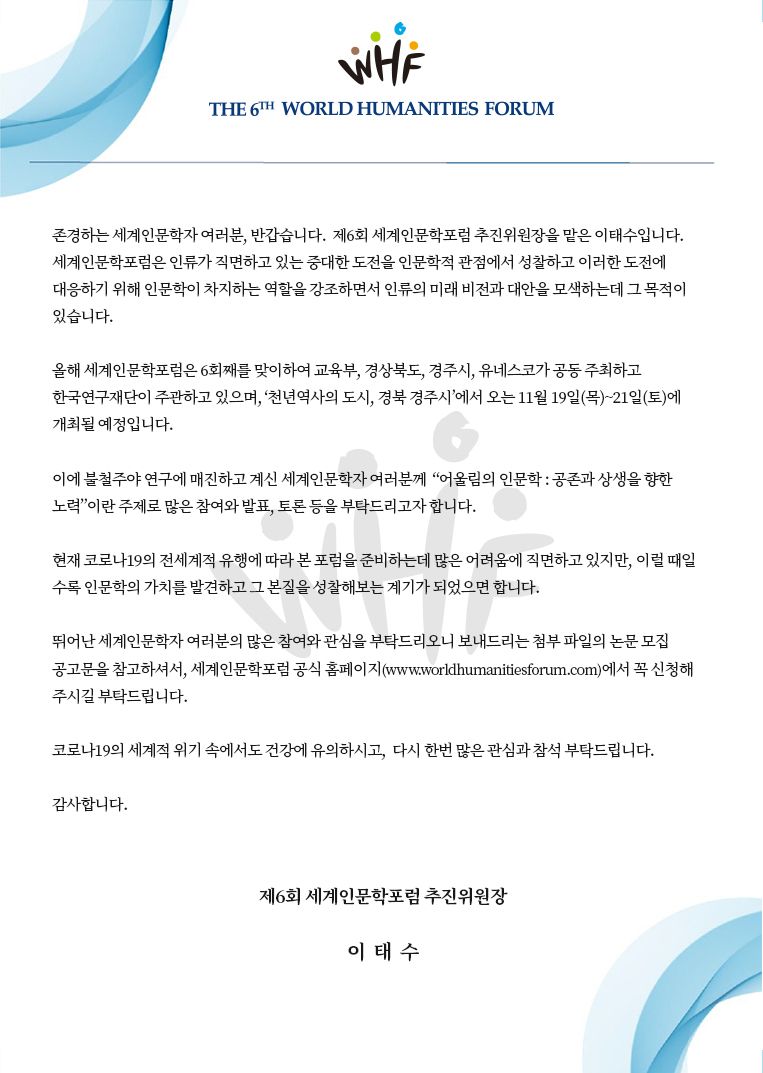담론의 장을 제공하기 위해 제6회 세계인문학포럼을 개최할 예정입니다.