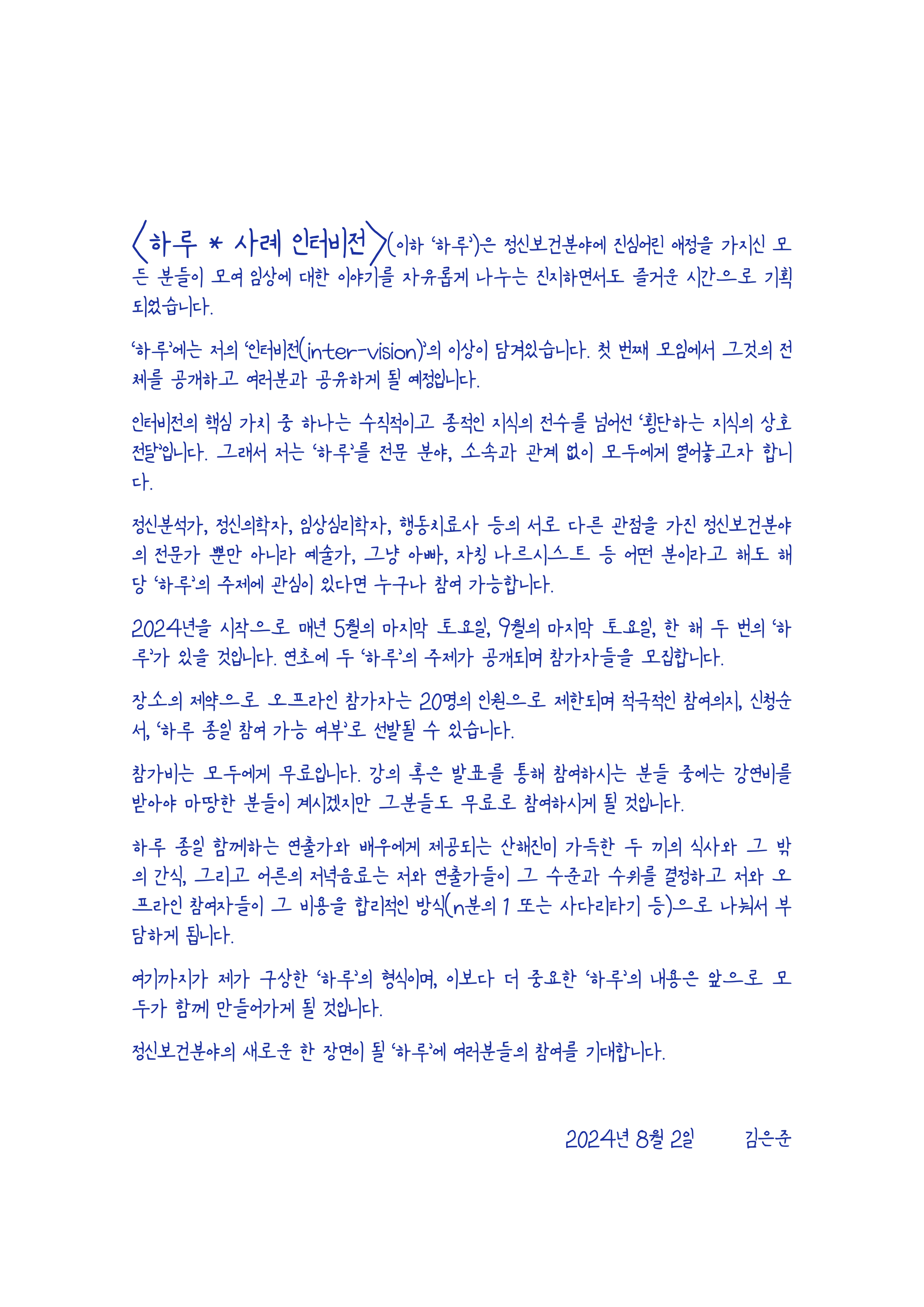 많은 분들의 성원과 적극적인 참여에 힘입어 즐거웠던 첫 번째 <하루>를 같이 보낸지 벌써 3개월의 시간이 지났네요.