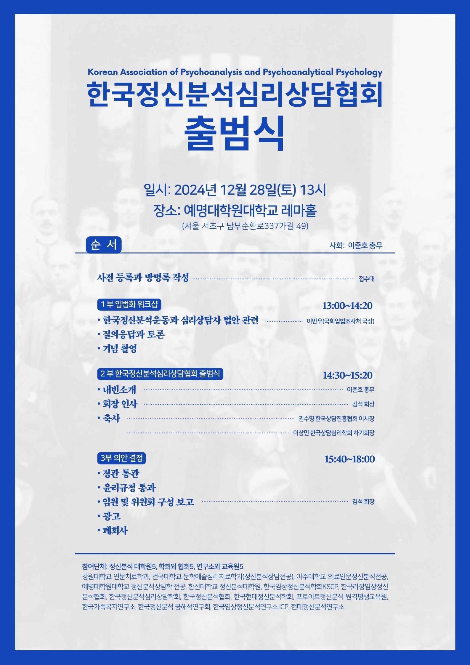 한국정신분석심리상담협회 출범식 안내드립니다.