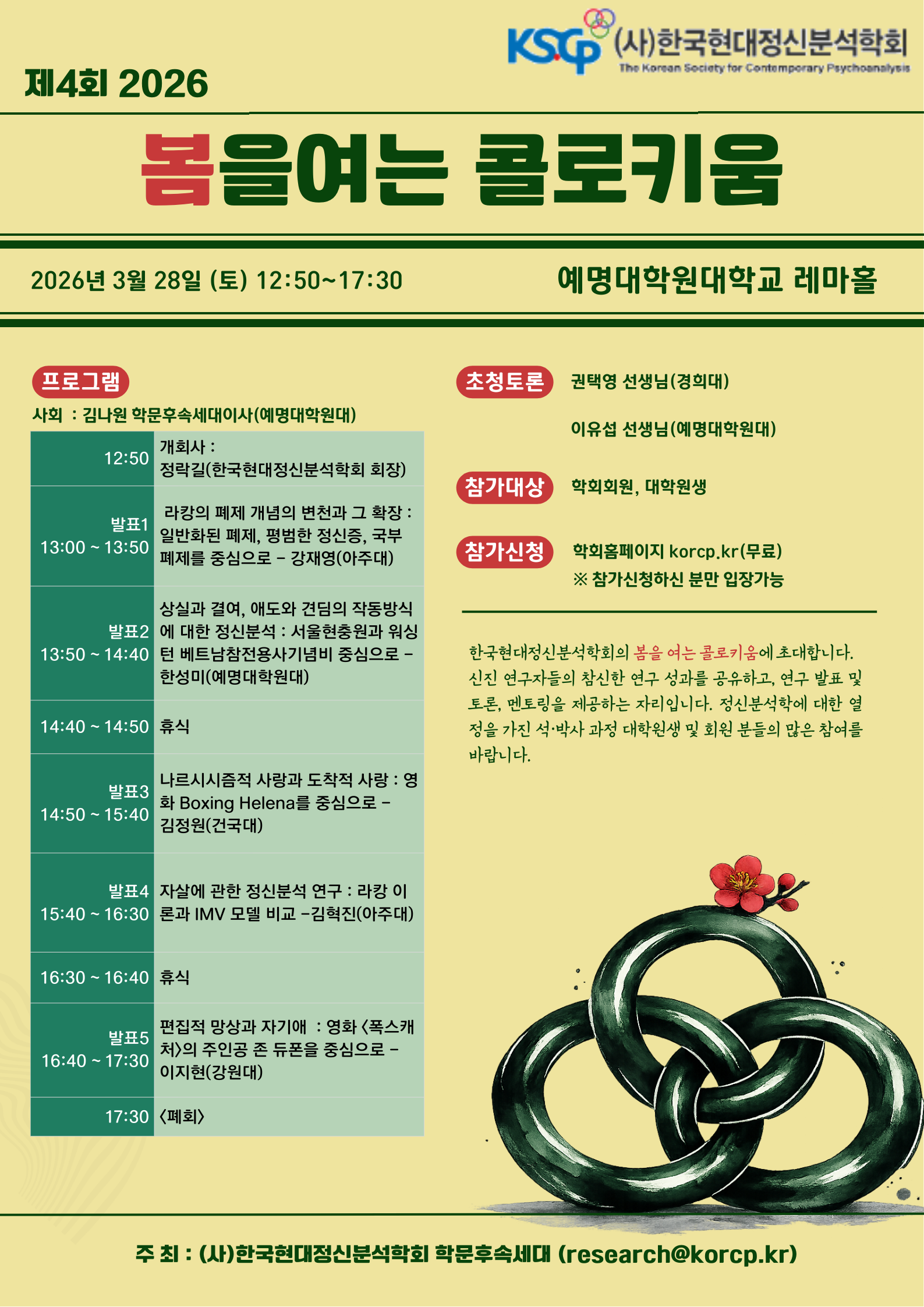 3월28일 예명대학교 대학원 지하1층 레마홀에서 봄이 열립니다.